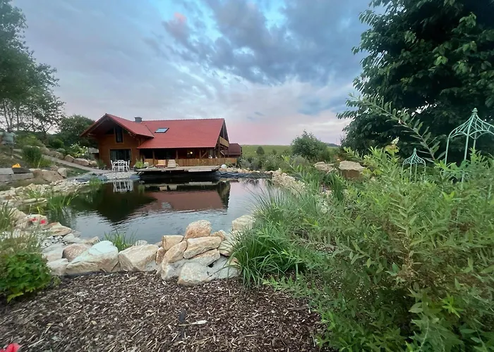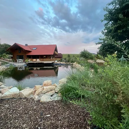 Blockbohlen Holzhaus Mit Sauna, Outdoor Jacuzzi Und Badeteich